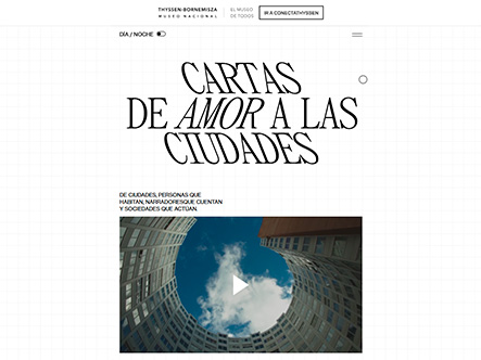 Este espacio online muestra las miradas que distintos artistas han proyectado sobre las ciudades más relevantes para el desarrollo de la cultura occidental, a través de las obras del Museo Thyssen. Al mismo tiempo, las complementa con las visiones contemporáneas de distintas personalidades del ámbito de la literatura, la historia del arte, la arquitectura y el urbanismo, transmitidas en forma de cartas escritas o audiovisuales.